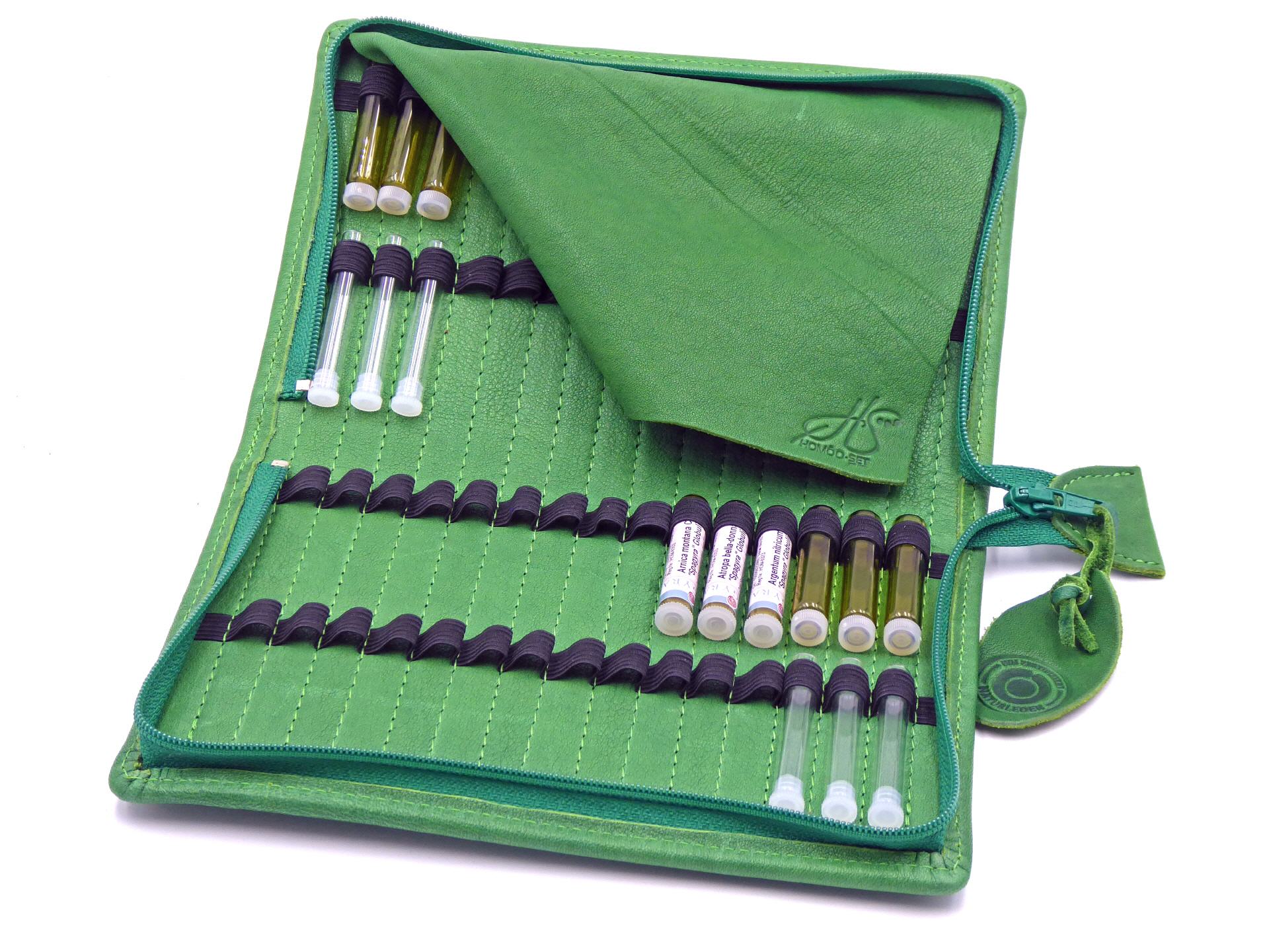 Ergänzend zu unseren Taschenapotheken, Reiseapotheken, und Hausapotheken erhalten Sie die passenden Leer-Gläschen, Etiketten, unarzneiliche Globuli, Medizinflaschen, Ampullarien, Bucheinbände für alle Fachbücher sowie Kleinleder-Accessoires.
